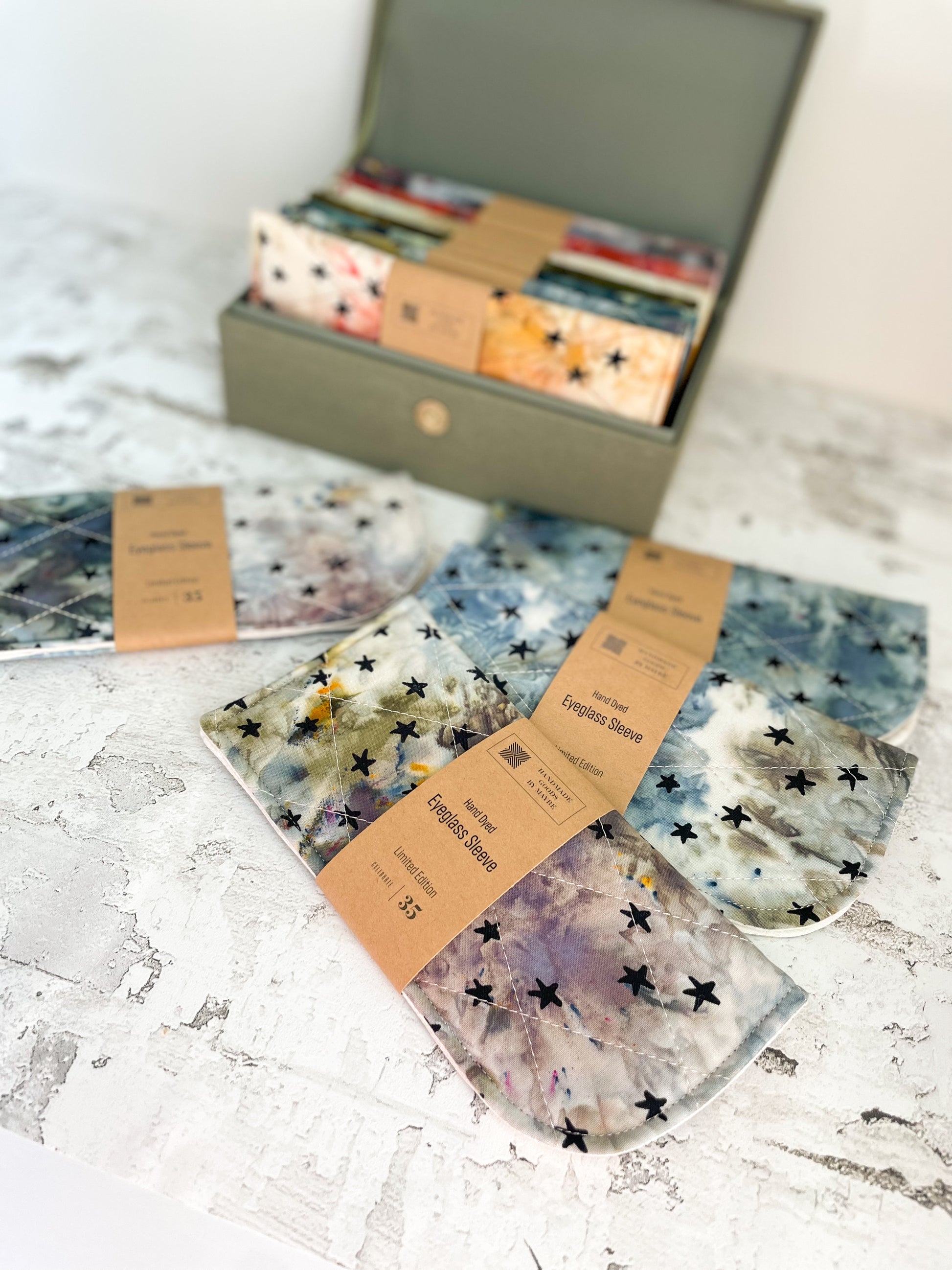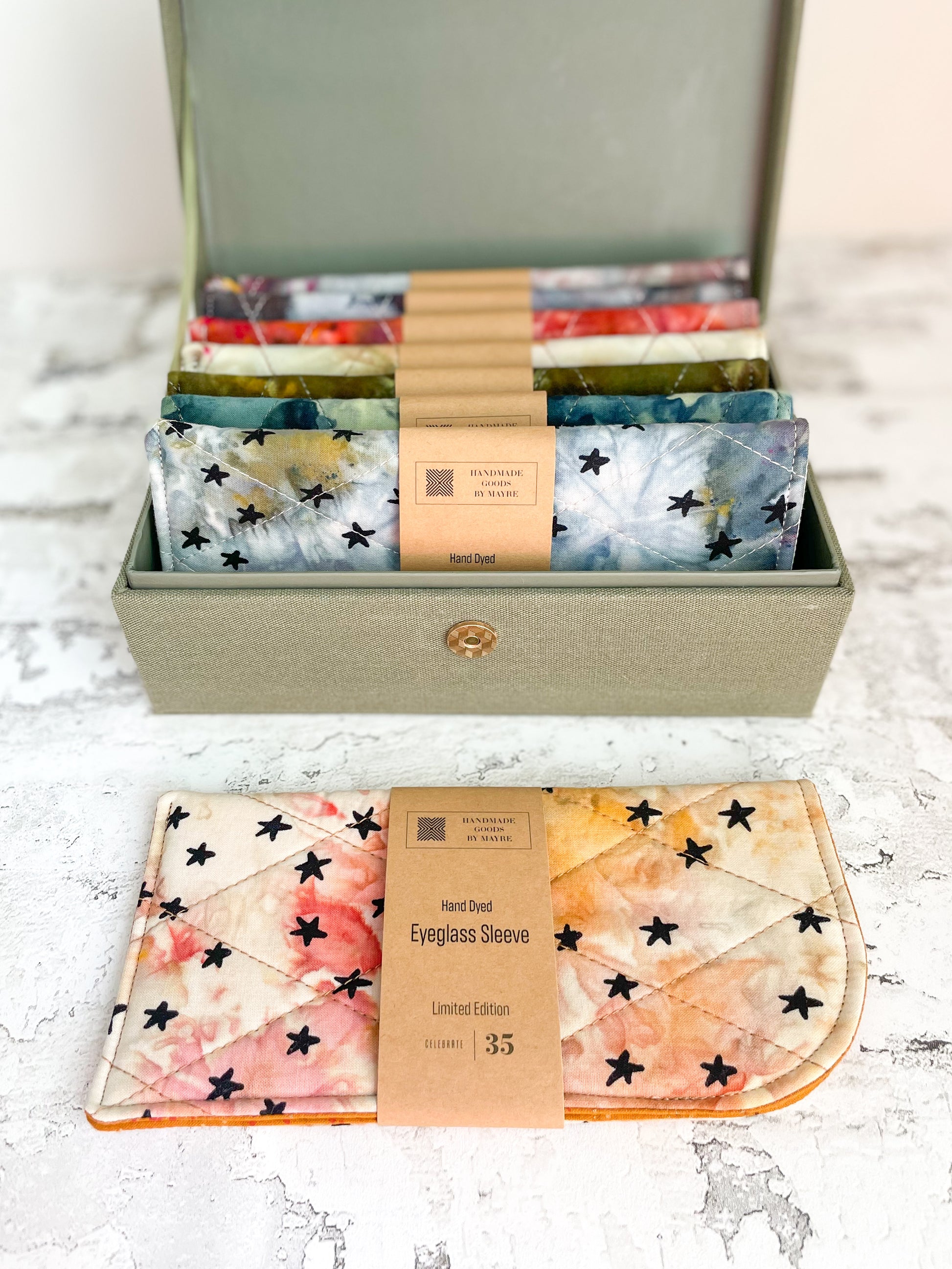 As part of the Celebrate 35, these limited edition eyeglass sleeve are crafted from hand dyed quilted cotton for a one of kind sophisticated look. The simple modern design and lightweight feel make it the perfect accessory for safely holding your eyewear.